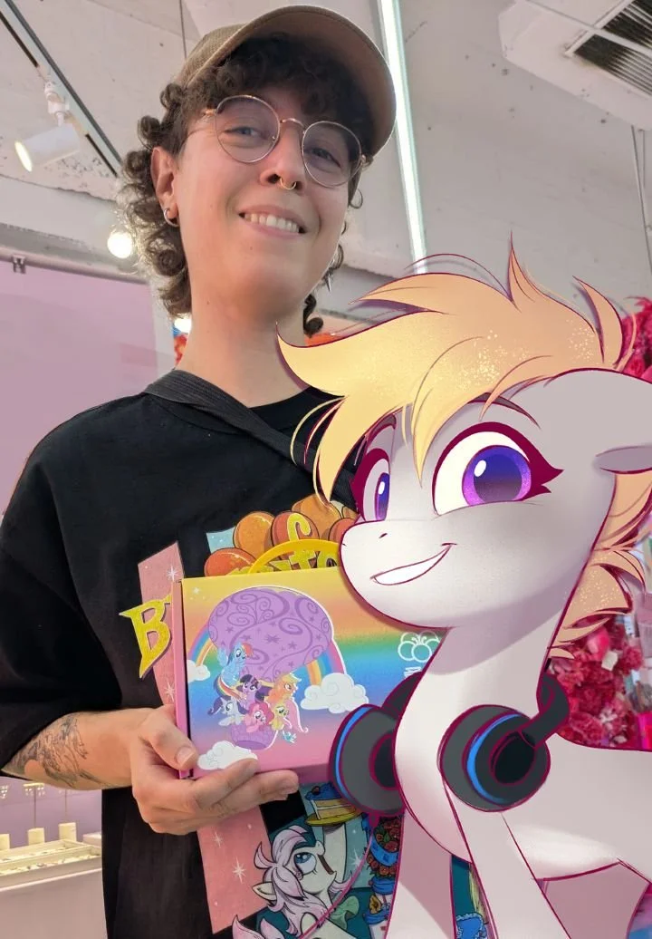 After years of being a fan of MLP:FiM and producing a ton of fanarts for the community, she was offered the opportunity to work on the MLP G5 movie “The Next Generation”. Here, she designed such beloved characters as Sunny, Izzy, and Sprout!”